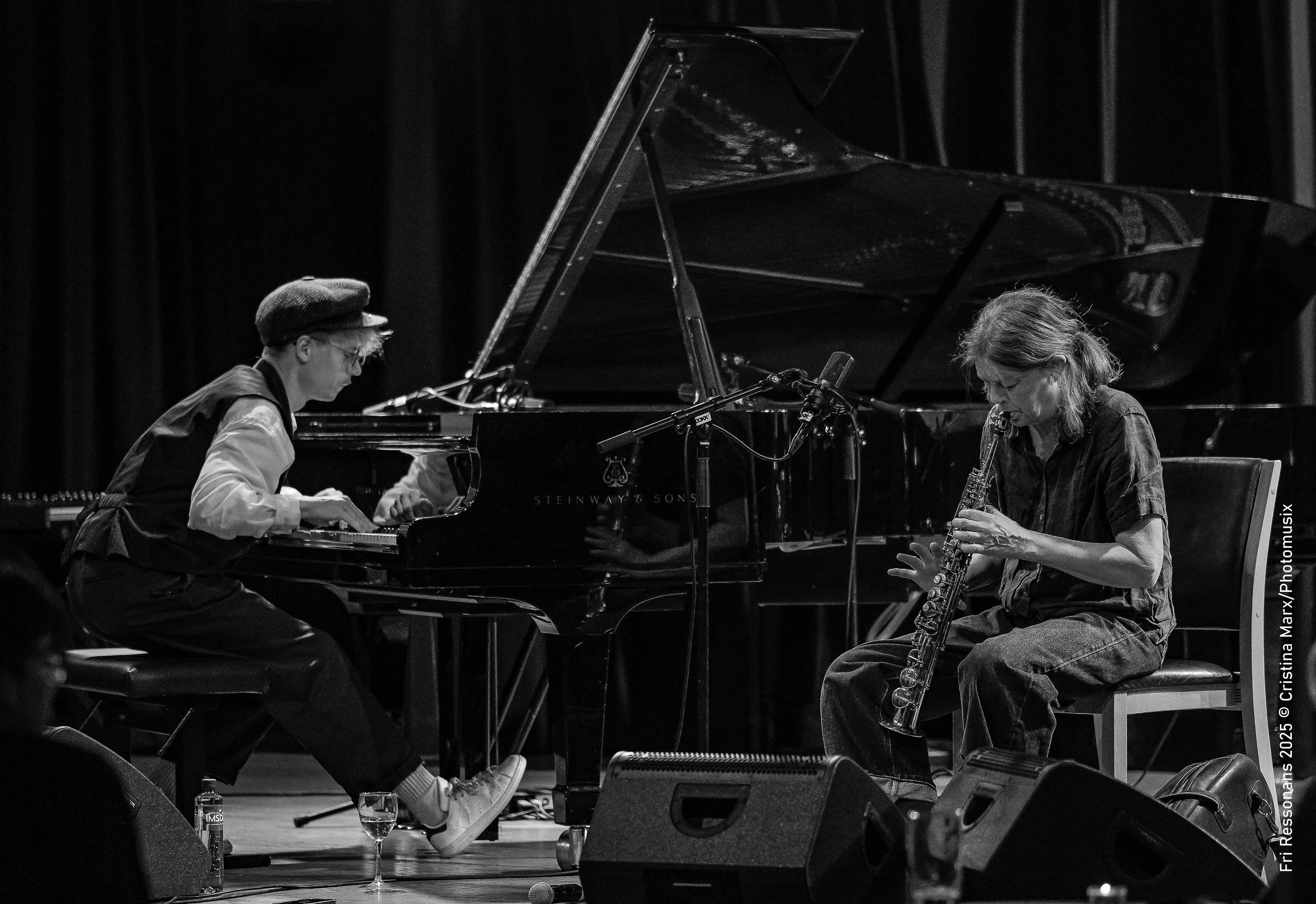 Og for all del, dette er ei heilt innafor erstatning. Både Anker og Zeeberg er improvisatørar av ypperste rang, og musikken snor seg frå punktmaleriske, minimale augneblink til clustertornadoar og utvida saksofonklangar til bluesy, gospelske stundar. Dei lyttar, skapar, svarar, komplementerer og lagar plass til kvarandre på meisterfullt vis. Ein fell vekk og let den andre spele aleine lengje, før dei kjem saman att i herleg samspel. Alle klangar som kan kome ut av ein saksofon og eit piano kjem frå scenen i den stunda dei er saman. Og så, stilldomen, før det vesle nikket som fortel oss at konserten er over.